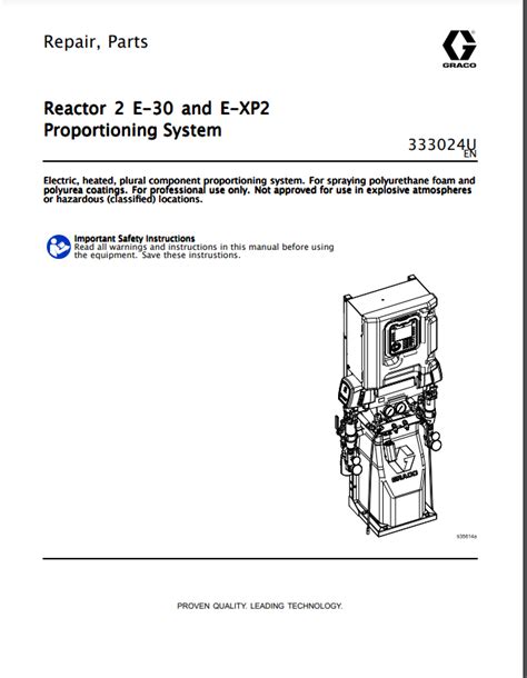 To avoid serious injury follow all warnings and instructions in the manual. Because it's a reactor 2 series proportioner, it offers. Information for operations, replacement parts, troubleshooting, technical data and warranty information can be found in the instruction manuals.