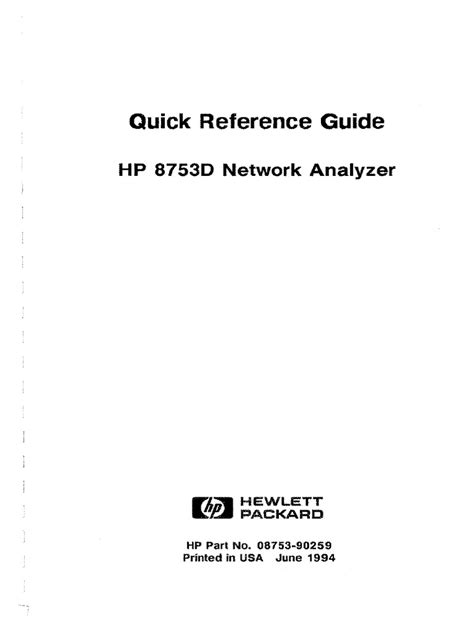 Hp 8753D Quick Reference Guide. Hp 8753d quick reference guide.pdf share technical documentation including product manuals,. Web installation and quick start guide hp 8753d option oil network analyzer hewlett.